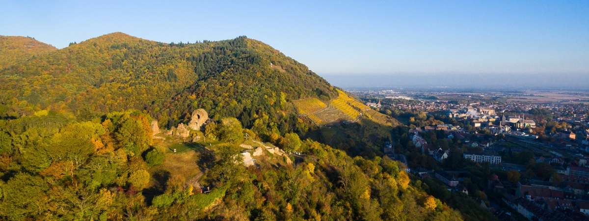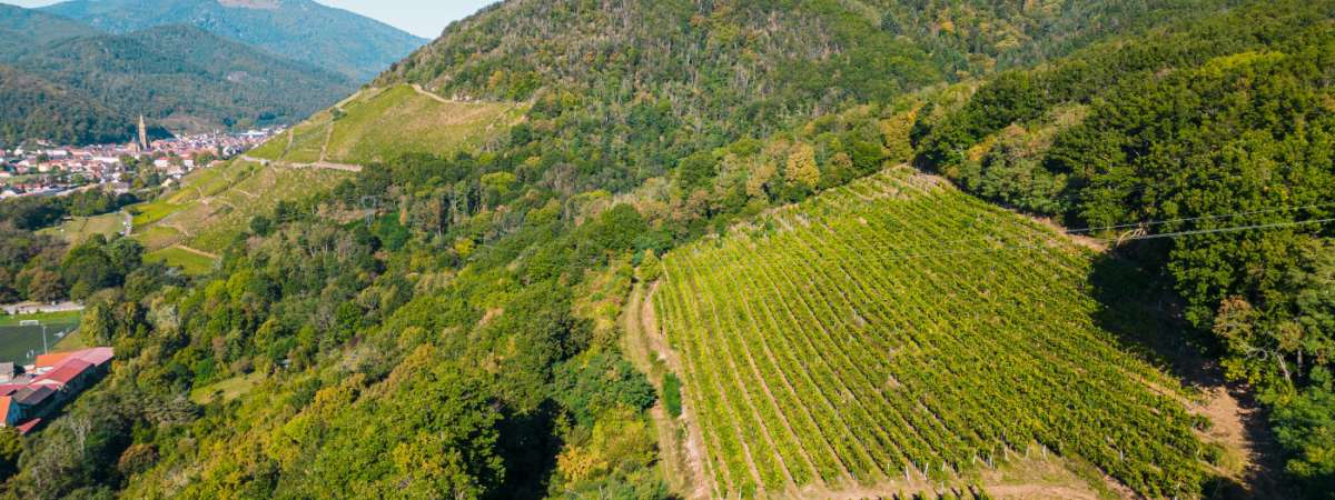 Eine Wanderung in drei Etappen: das Rangenkreuz, das den steilsten Weinberg des Elsass mit Blick auf Thann und das Thurtal überragt, die Waldkapelle, eine kleine Kapelle im Herzen des Waldes, und dann die Wotan-Eiche.