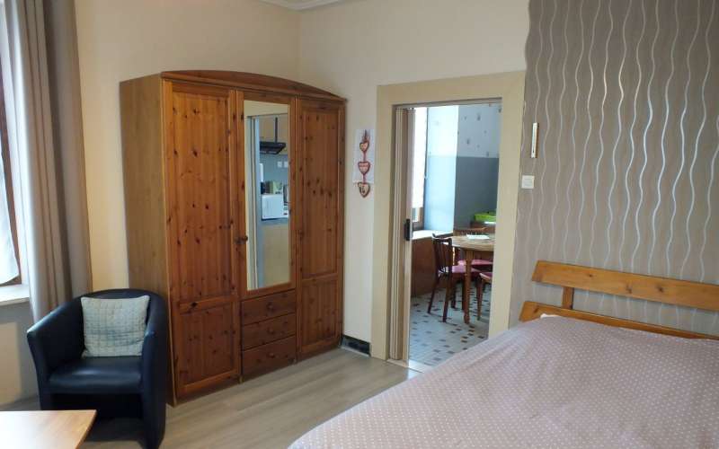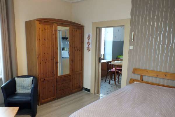 Air-conditioned apartment on the raised ground floor of the owner's house. Parking in enclosed courtyard.