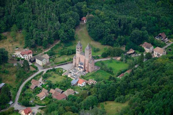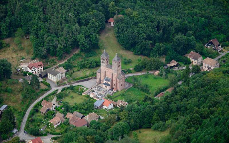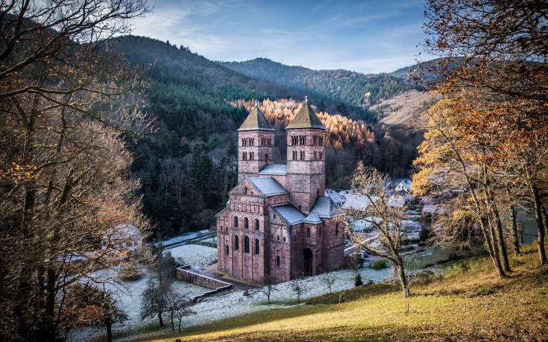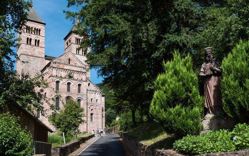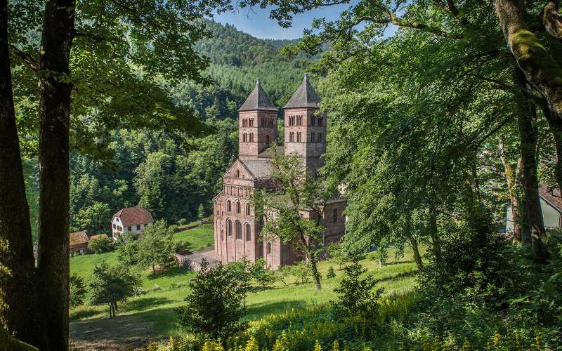At the foot of the Grand Ballon, the Abbey Church of Murbach awaits you by the side of a shady road. The Monastery was one of the most powerful in the Holy Roman Empire in the 11th and 12th centuries. Rebuilt after the Thirty Years' War, it remains an impressive edifice.