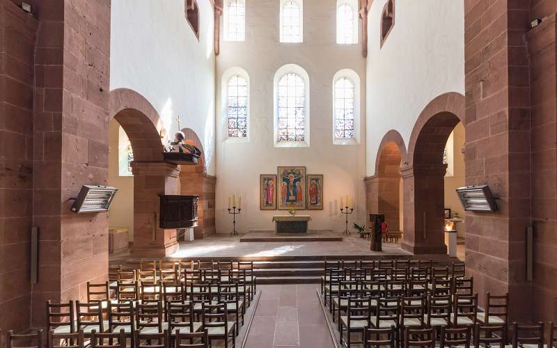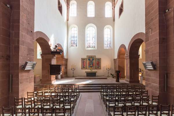 You can admire the typical red sandstone Romanesque facade and the tympanum of the Southern Portal. There are also 2 sculpted lions - one of which pulls its tongue out at visitors! A pleasant walk which should not be missed!