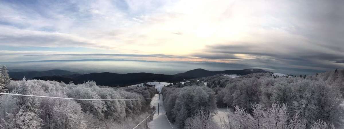 Point culminant des Vosges avec 1424m, le Grand Ballon permet d’allier le plaisir de skier et le plaisir du grand air sublimer par une vue extraordinaire sur la plaine d'Alsace, la Forêt Noire et les Alpes. Profitez pleinement de cette station aux 4 remontées mécaniques (dont un fil-neige) et 9 pistes pour tous les niveaux.