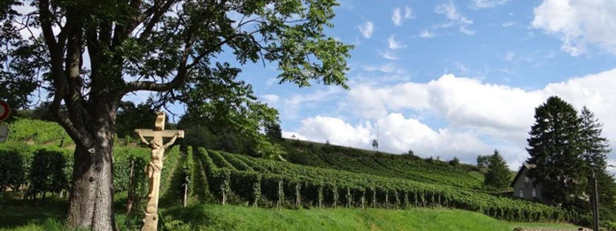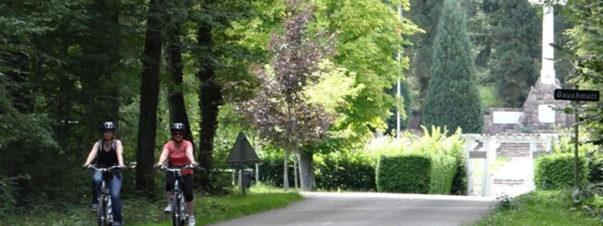 En effet le col du Bannstein dispose seulement d'une partie un peu plus relevé de 2 km entre 5 et 7% mais cela est loin d'être infranchissable. Vous aurez largement l'occasion de récupérer dans la descente vers Soultzmatt par Gauchmatt et son cimetière militaire roumain. L'ascension s'avère plus longue si vous faites le circuit dans l'autre sens
